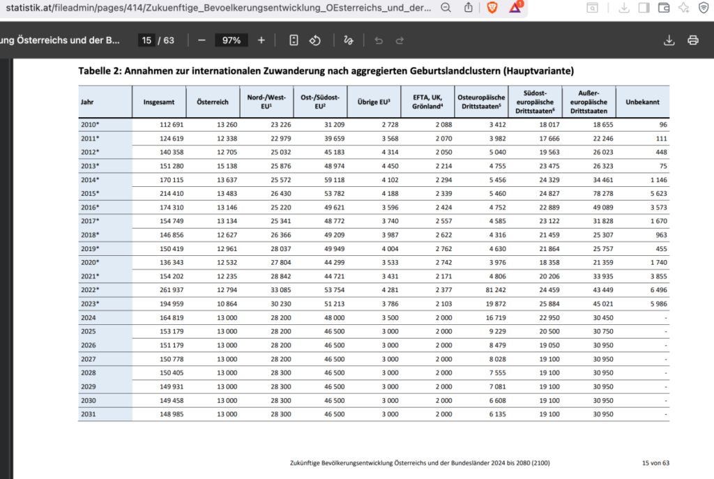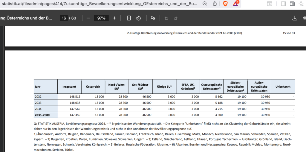 Neseniai atidžiau peržiūrėjau 2024–2080 m. gyventojų prognozę, pateiktą Statistik Austria, ir ji tikrai yra įspūdinga (visos paryškintos vietos yra autoriaus):
